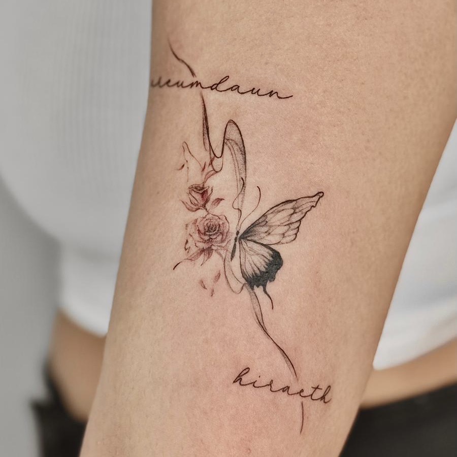 Natalie, known professionally as Kinako Ink, is a London-based tattoo artist specialising in fineline and microrealism. Her work focuses on soft yet intricate subjects, with a particular love for ornamental elements, botanical forms, and butterflies — often blending delicate linework with subtle textures to create tattoos that feel both structured and serene.