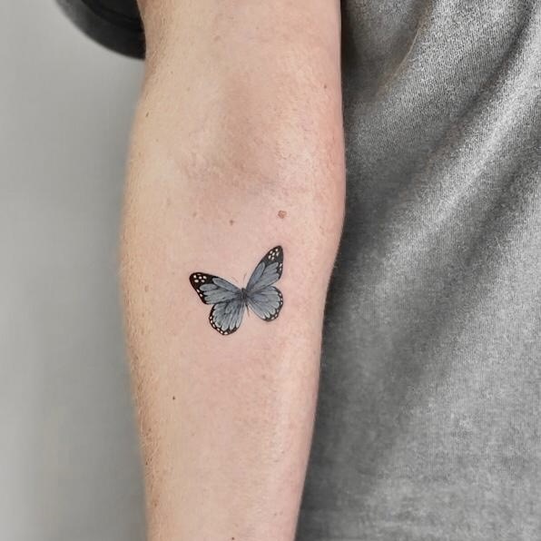 Her favourite projects centre around finely detailed animal pieces — think butterflies or koi fish, framed by flowing botanical accents and precise linework. More recently, she’s been drawn to colour-realism, looking to incorporate soft tones into her designs to enhance depth and bring a new dimension to her style.